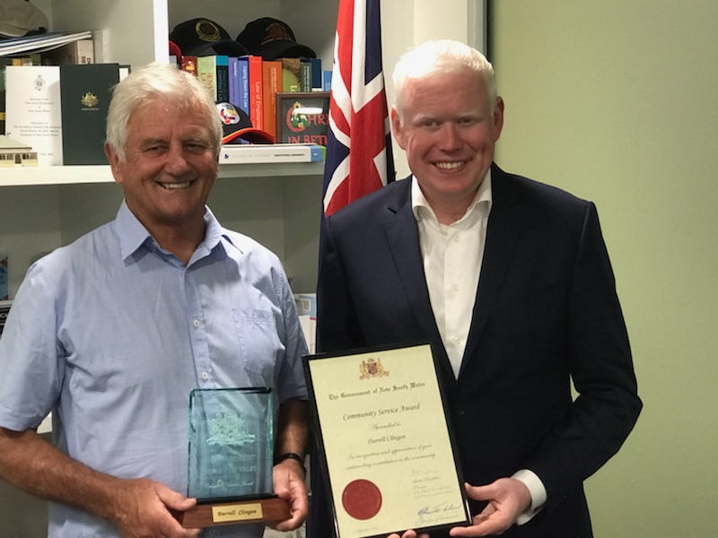 Darrell Clingan was presented with a Premier’s Community Service Award for his many contributions to the community over the years, including serving as Chair of the South Precinct Committee. The Award is given to only two people in each electorate every year.