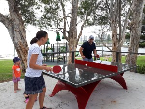 Visitors from Tumut, Belinda and Ben Wielinga, were amongst the first to try out the new outdoor ping pong table at Black Beach. While you can borrow